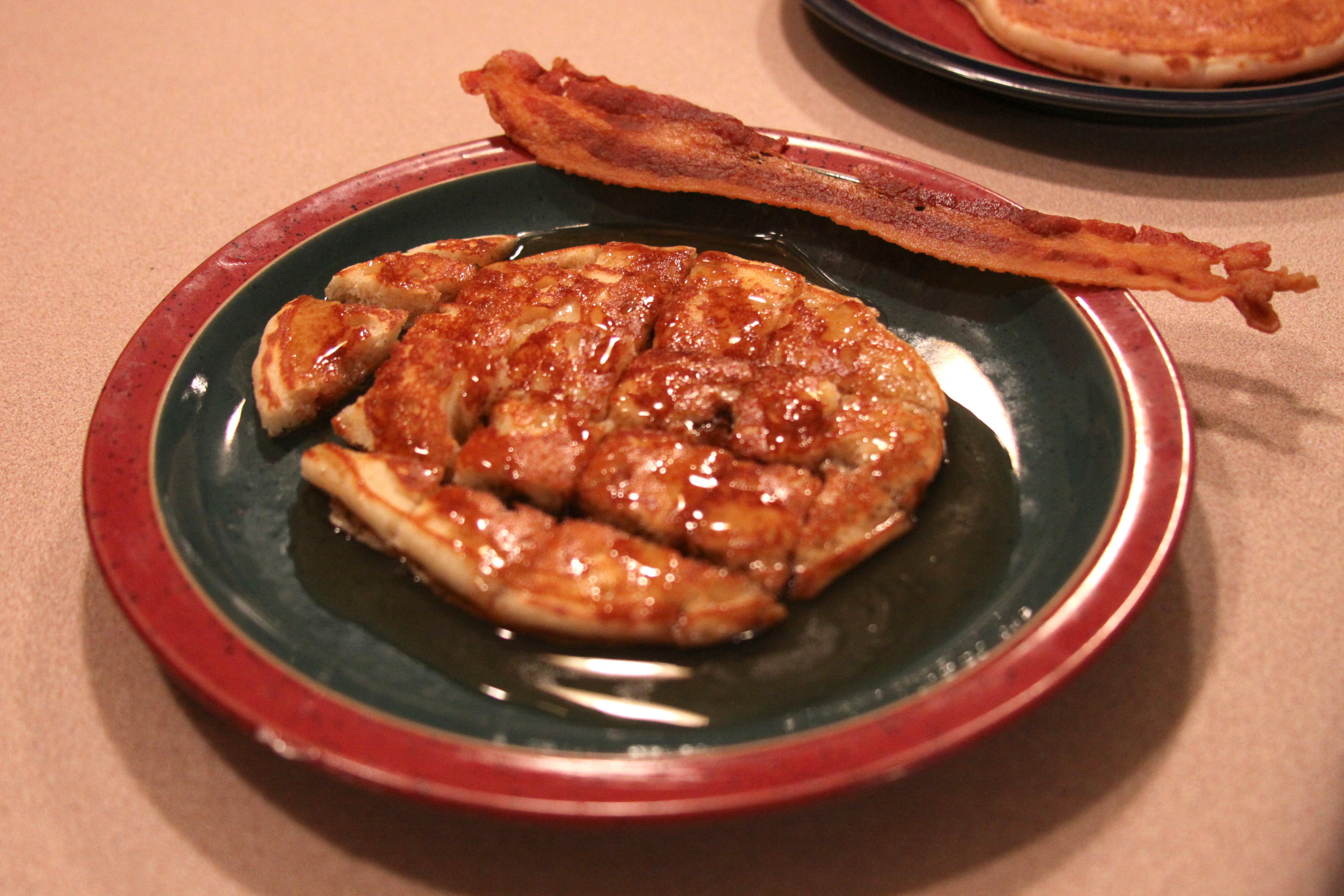 We had a tradition going for awhile around our house. Saturday morning pancakes or waffles, made by dad and enjoyed on the coffee table while watching cartoons.